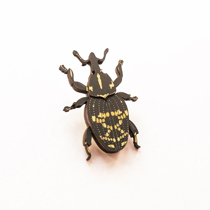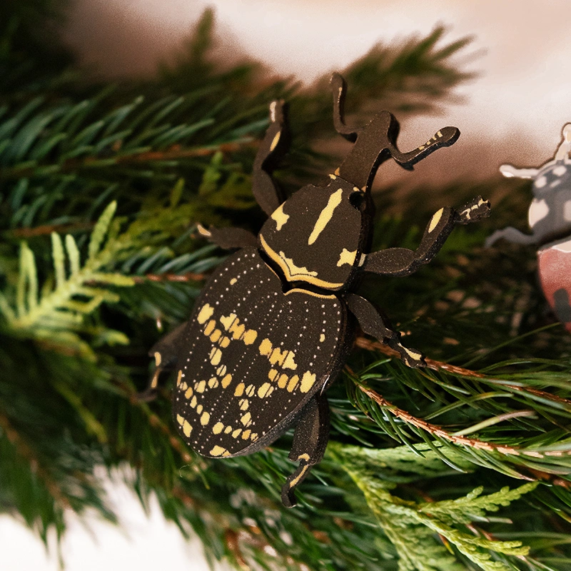 Haal de grote dennensnuitkever in huis voor jouw boom! Dit is een handgemaakt, houten ornament met een clipje op de achterkant waarmee je hem aan een dennentak kan bevestigen.