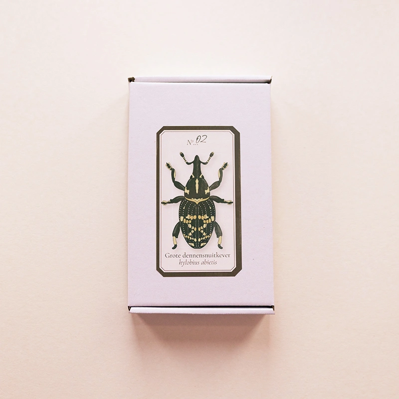 De snuitkever komt in een luxe geschenkverpakking: “Oecologische Fauna van den Kerstboom”